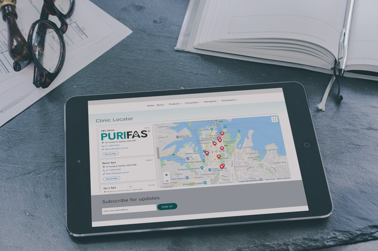 1. Go to the Purifas FaceShield clinic search tool.